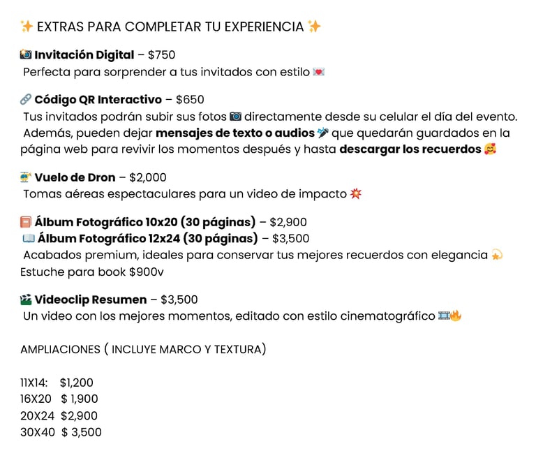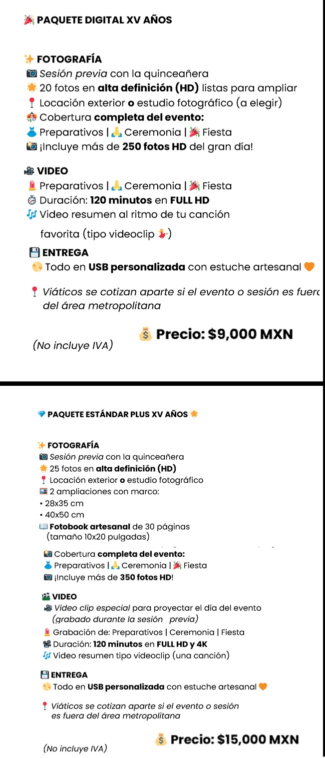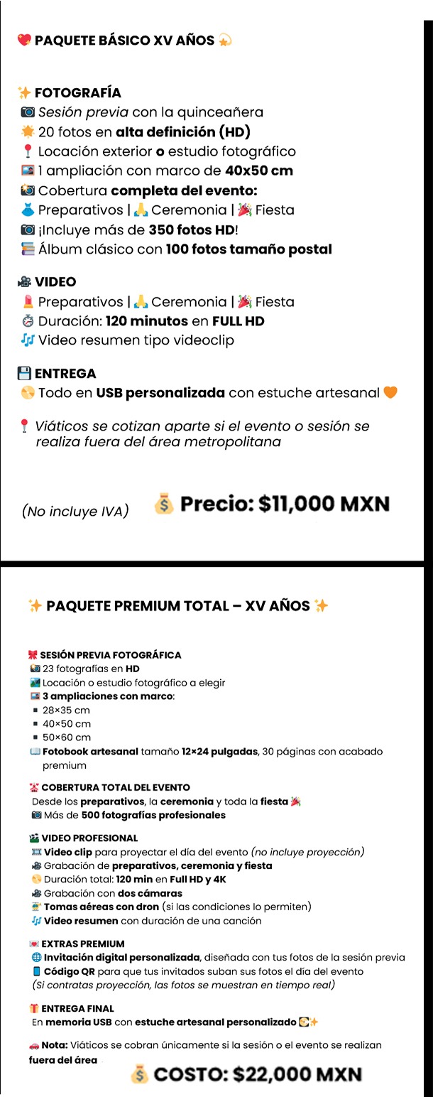 Ofrecemos paquetes básico, digital, estándar plus y premium.